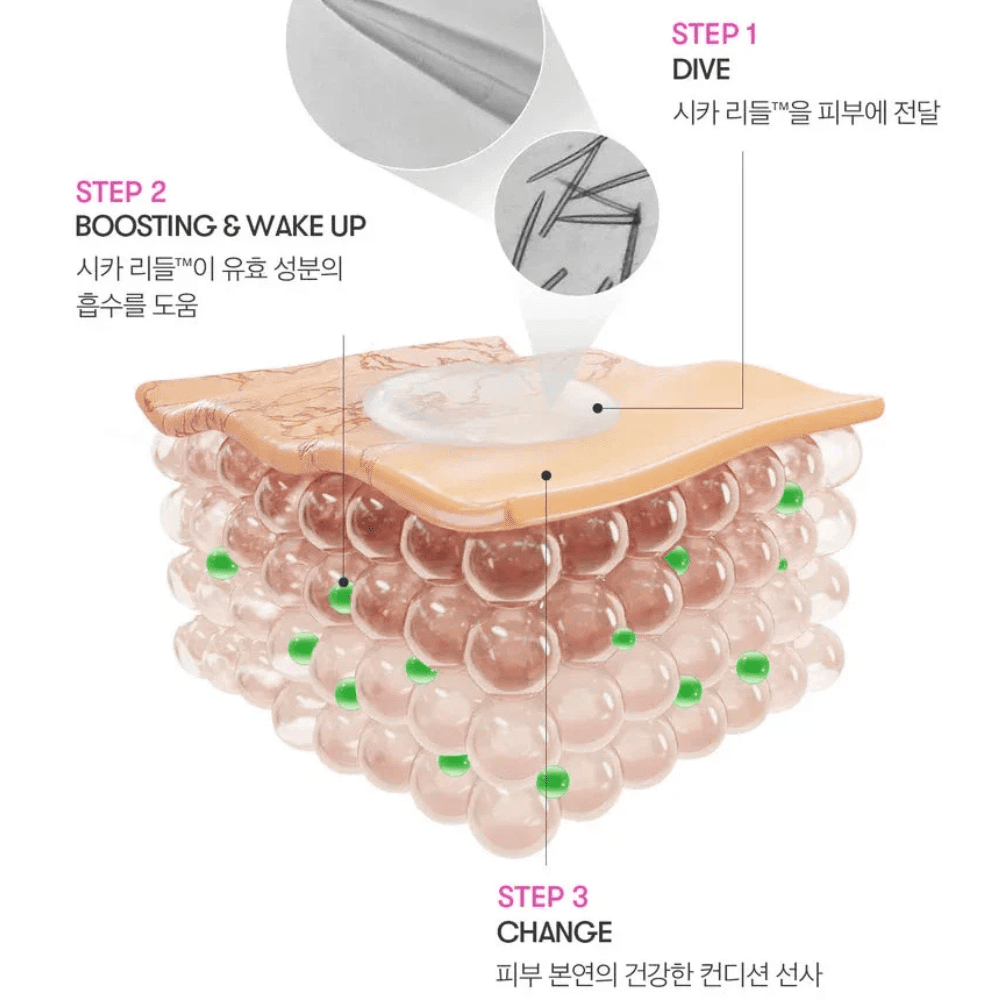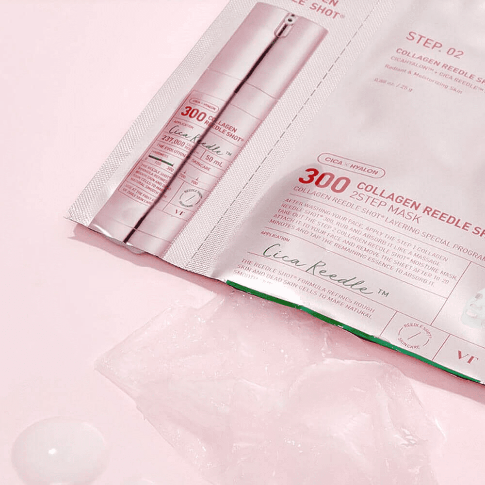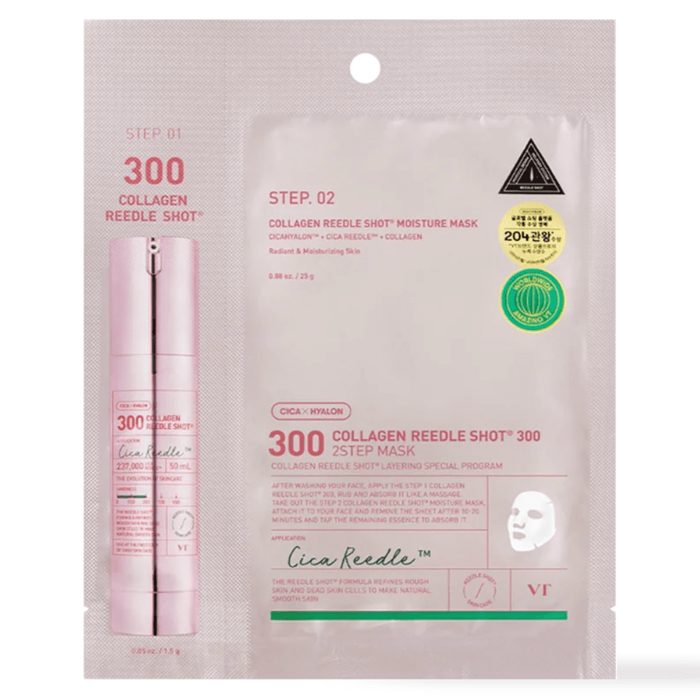 Modo de uso: Aplicar primero el Step 1 (Reedle Shot 300) sobre la piel limpia y seca, masajear suavemente hasta su absorción. Luego aplicar la mascarilla (Step 2), dejar actuar de 10 a 20 minutos y dar suaves toques hasta absorber la esencia restante.