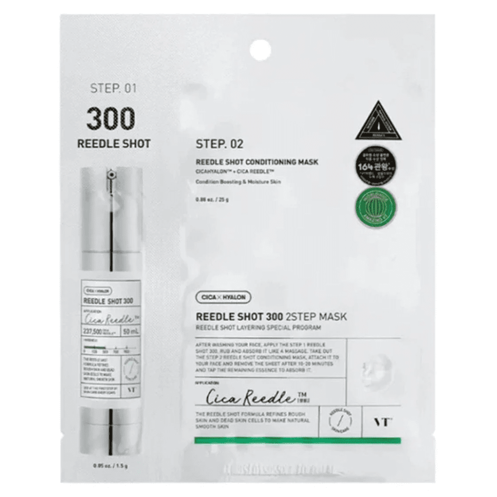 Modo de uso: Aplicar primero el Step 1 (ampolla) sobre el rostro limpio y masajear suavemente. Luego colocar la mascarilla (Step 2), dejar actuar de 10 a 20 minutos, retirar y dar suaves toques hasta su absorción.