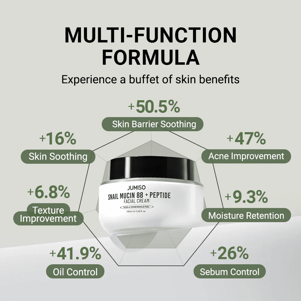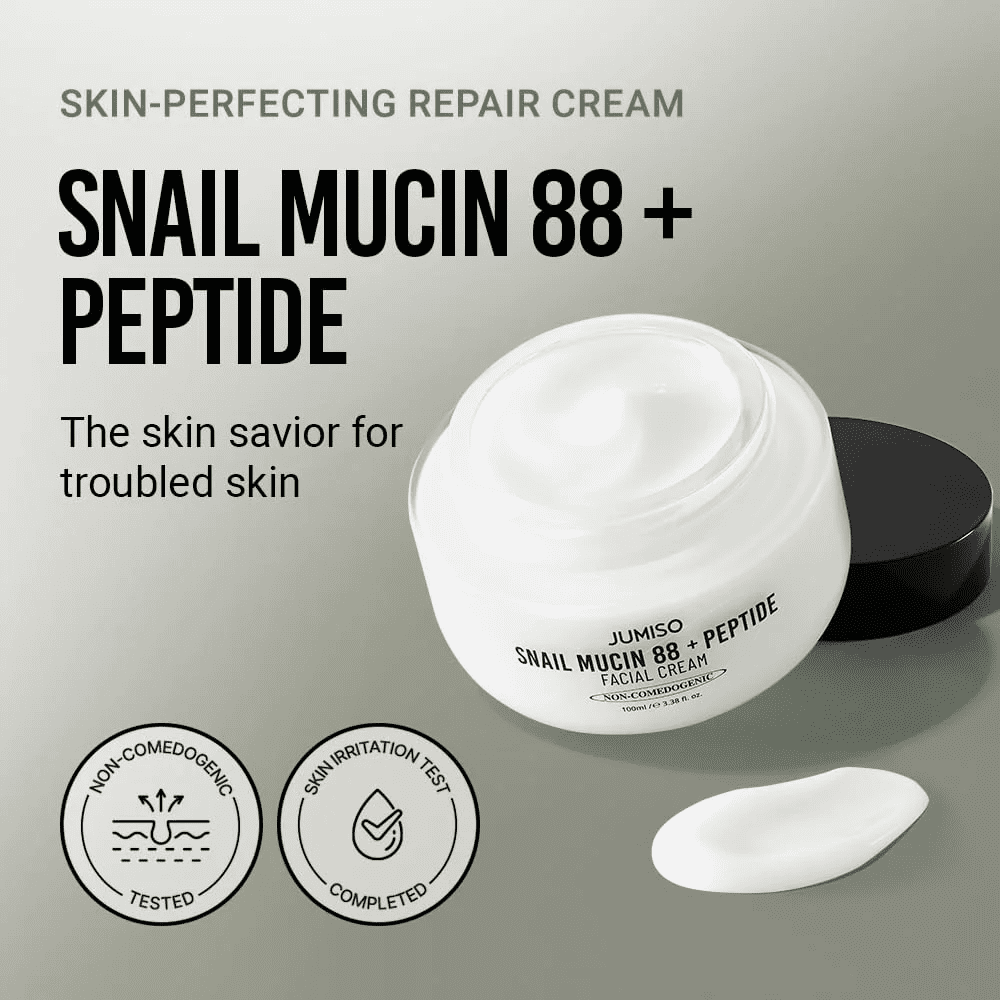 Crema facial formulada con 88% de mucina de caracol (Snail Secretion Filtrate) y un complejo de péptidos, ingredientes conocidos por ayudar a hidratar profundamente, mejorar la elasticidad y favorecer la regeneración de la piel. Su fórmula incluye niacinamida, que ayuda a unificar el tono y mejorar la luminosidad, mientras que pantenol, alantoína y ácido hialurónico contribuyen a calmar la piel, reforzar la barrera cutánea y mantener una hidratación duradera. Su textura ligera tipo gel permite absorción rápida sin sensación pegajosa, ayudando a que la piel luzca más suave, firme y saludable.
