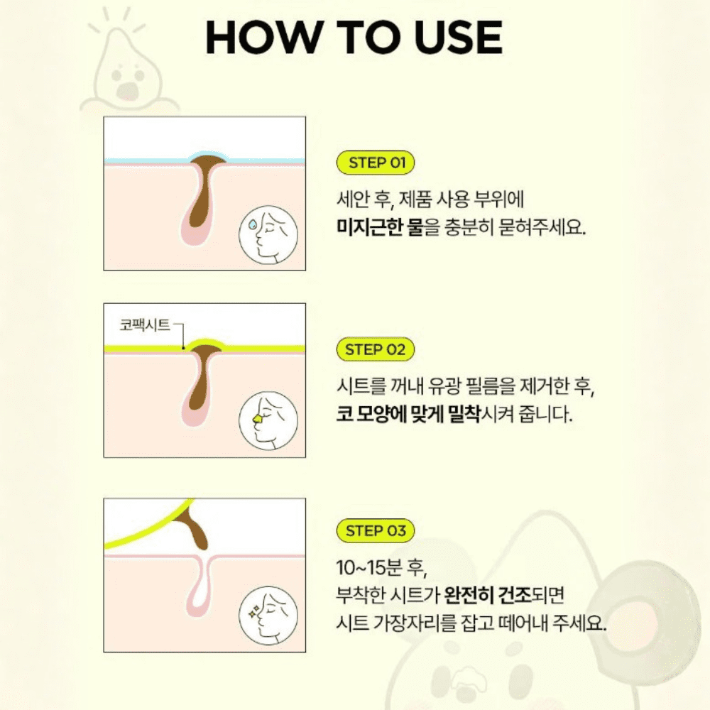 Modo de uso: Humedecer la zona de la nariz, aplicar la tira y dejar actuar hasta que se endurezca. Retirar suavemente desde los bordes.
