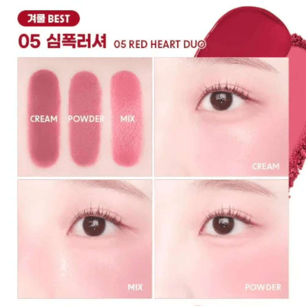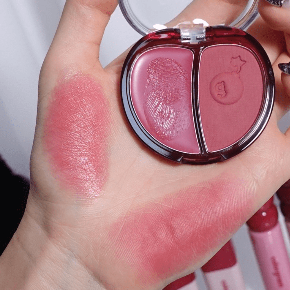 Modo de uso: Aplicar primero la textura en crema con los dedos o esponja para un efecto jugoso. Luego, sellar o intensificar con la parte en polvo usando una brocha. También se pueden usar por separado.